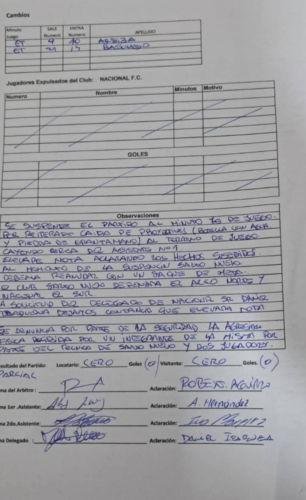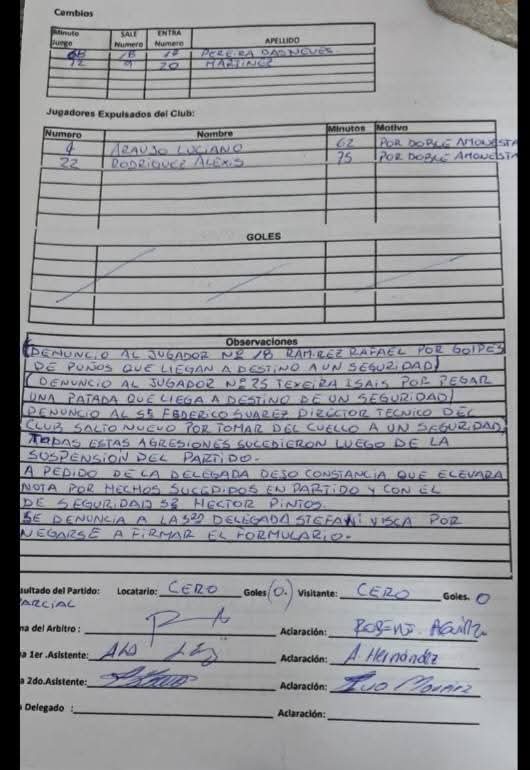 Un espectáculo lamentable que vuelve a colocar al arbitraje en el centro de la discusión. Vale aclarar que los jugadores de Nacional no tuvieron responsabilidad alguna en las decisiones tomadas por el juez.
