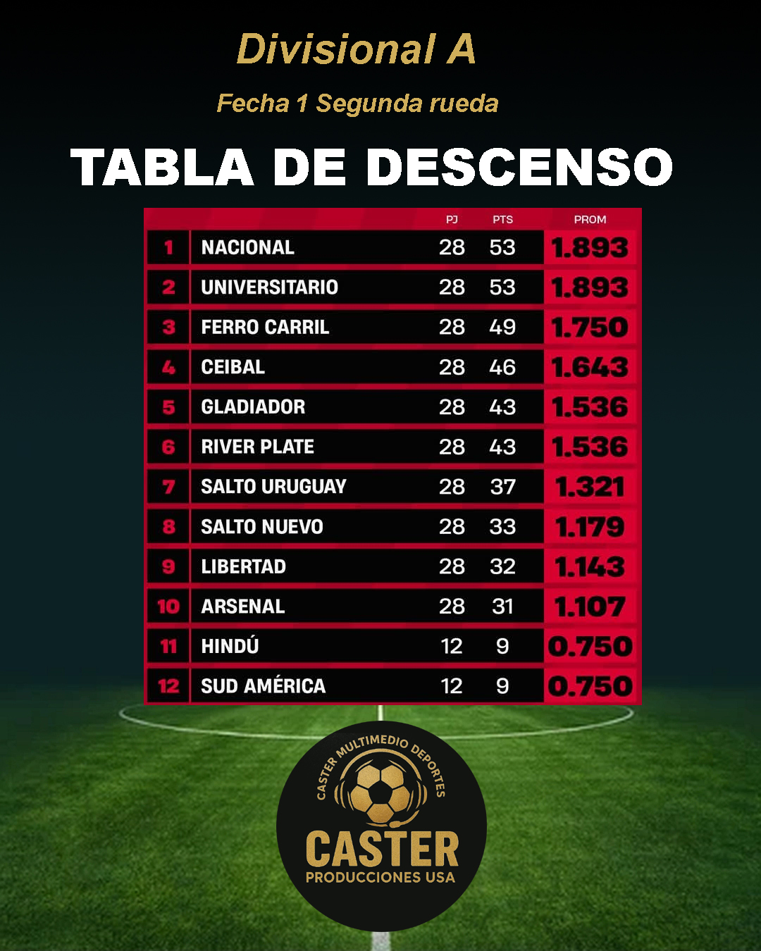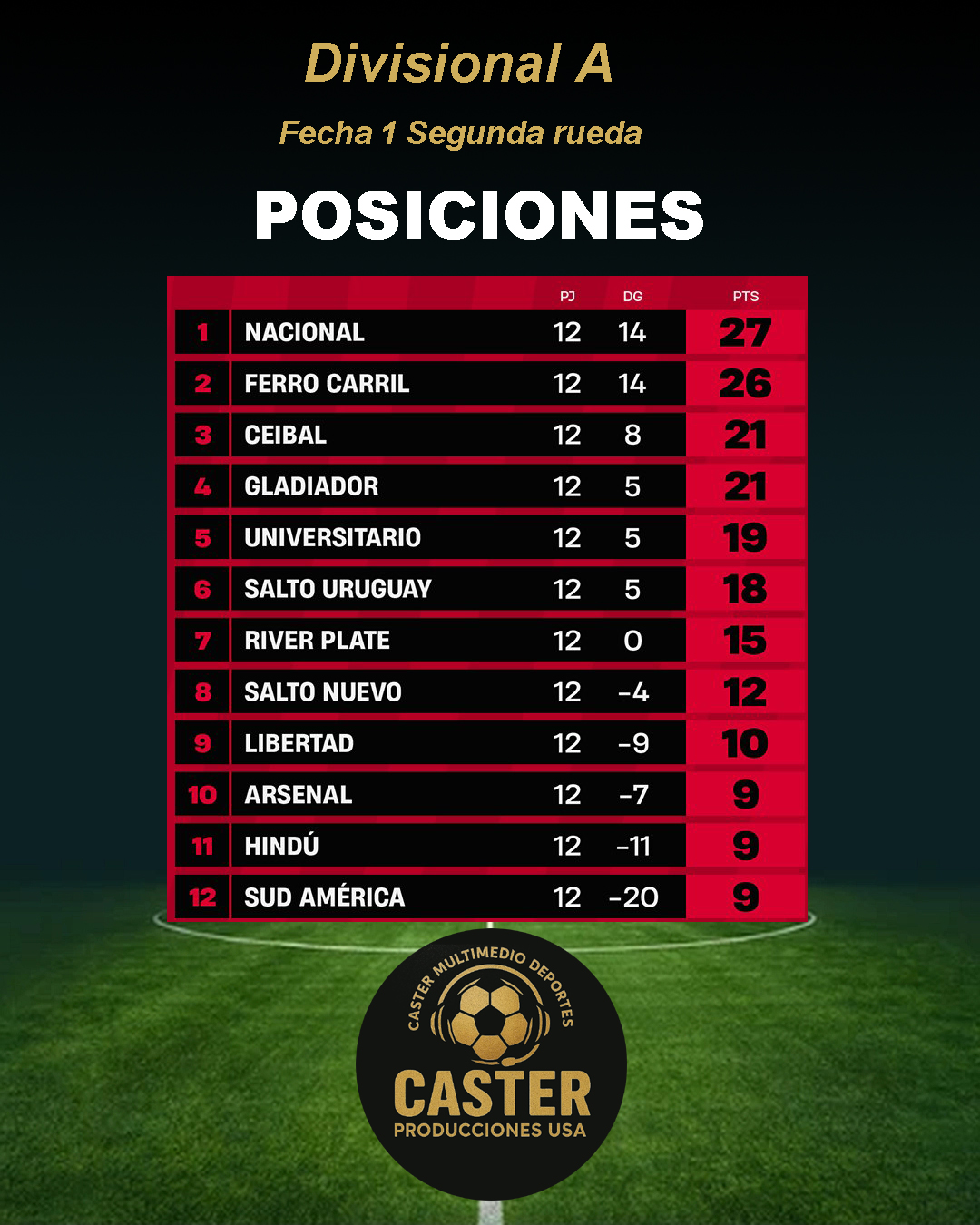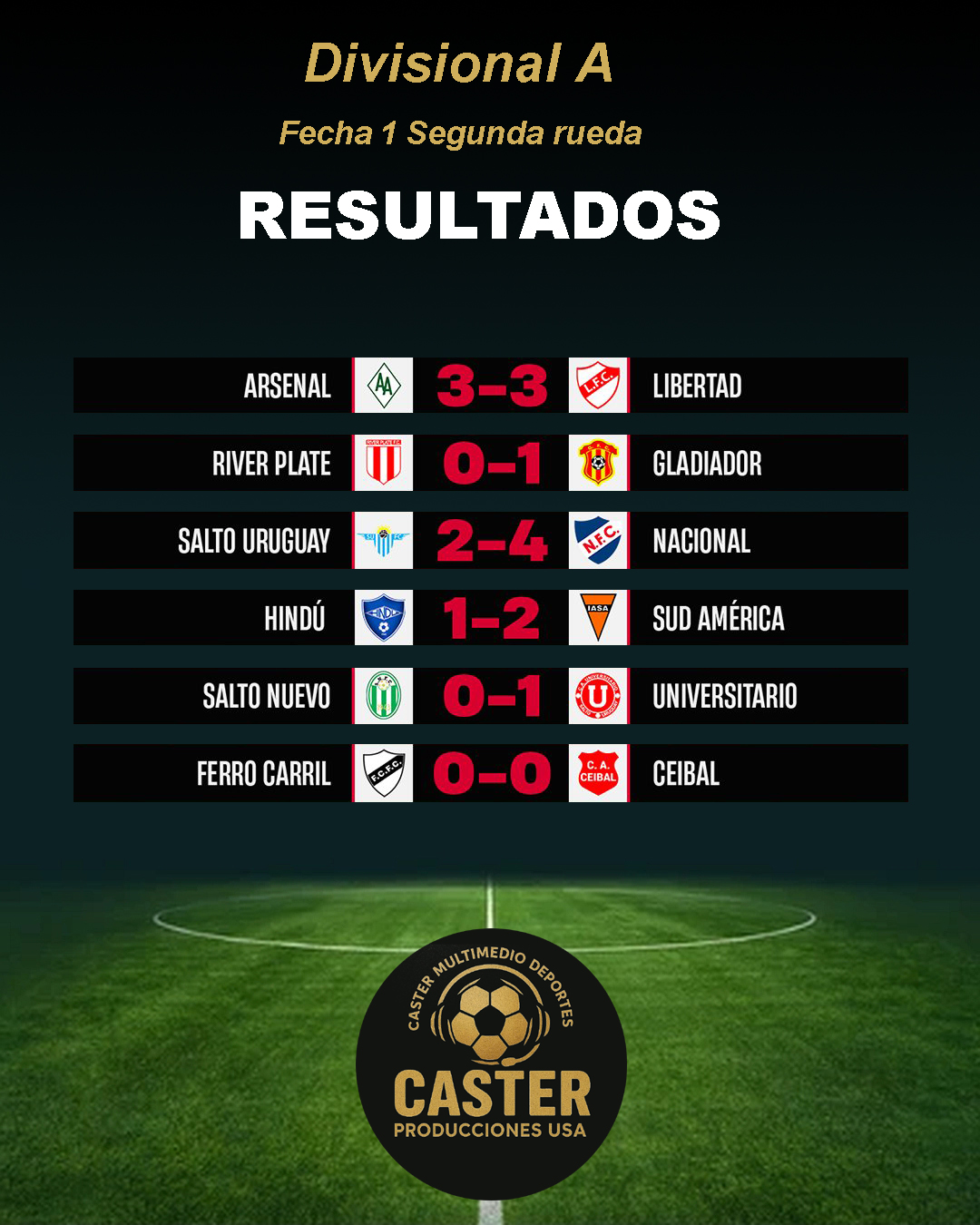 Divisional A del Fútbol salteño: Fecha 1 Segunda rueda Resultados Posiciones Descenso Navegación de entradas Dialogamos telefónicamente con el edil Jonathan Aramburo (Lista 50) PN