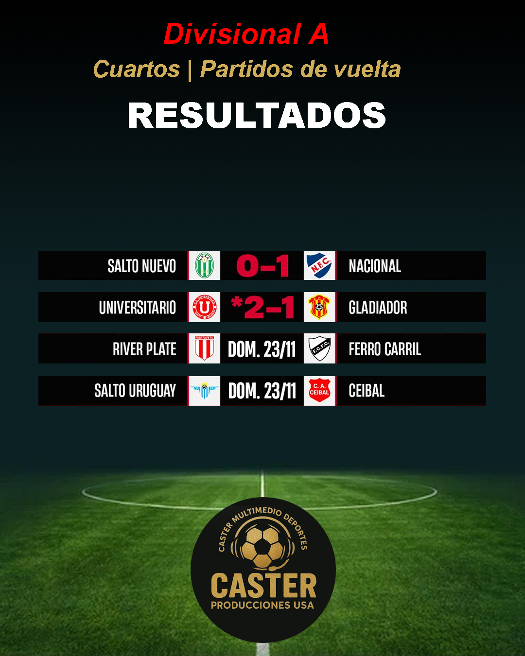 Resultados de la divisional A Cuartos de final | Partidos de ida 22 Noviembre de 2025 Navegación de entradas Un salto al Carnaval- Otra de Caster Producciones – Sábado 22 de noviembre de 2025